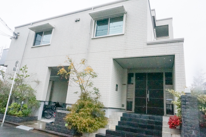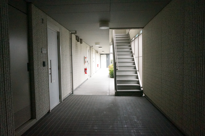 今回紹介する物件は2階なので写真右の階段を上っていきます