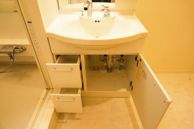 洗面台下には引き出し収納も。