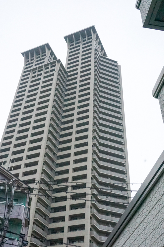 階段をあがると、どーん!とタワーマンションがお目見え
