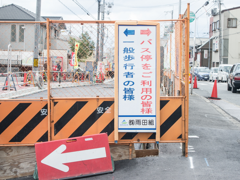 今日から長尾駅方面行きの車道が市民病院側に移り、工事が中央の車線に移っています。