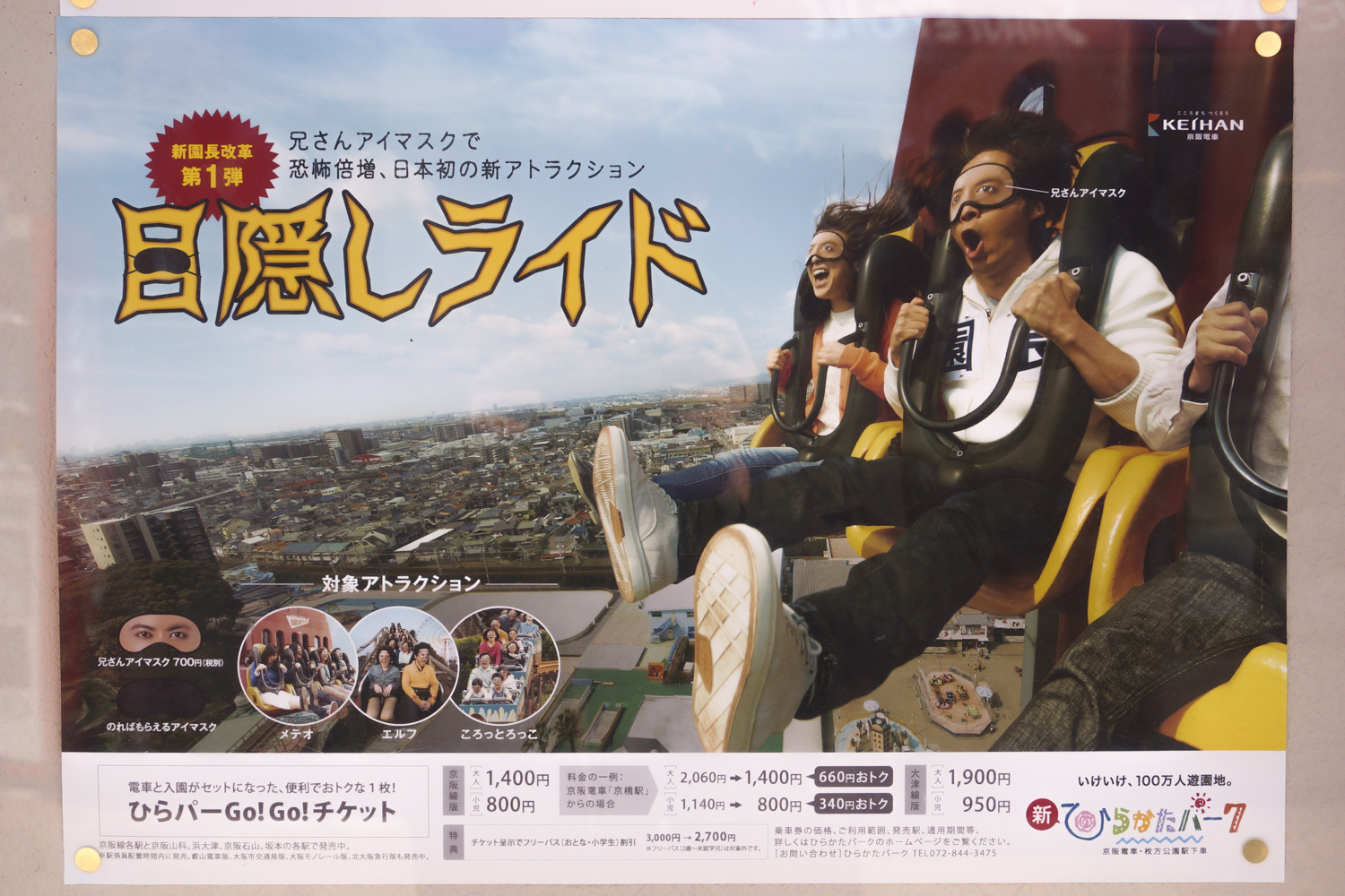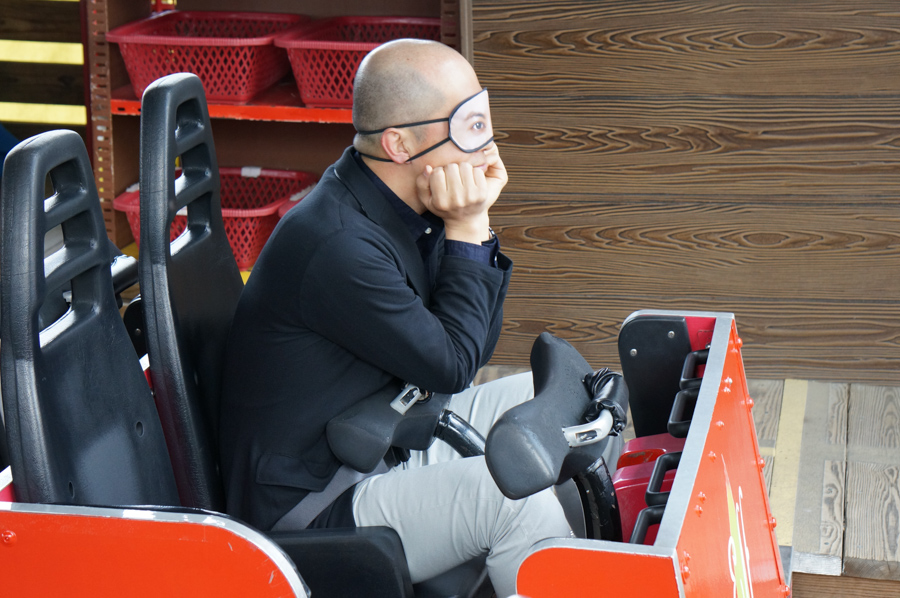 その名の通り、目隠ししてアトラクションに乗るというものです。乗れるのは「メテオ」「エルフ」「ころっとろっこ」の3種類。「兄さんアイマスク」はまだ発売してませんが、一足先にカズマ@ひらつーが体験させてもらってきました!