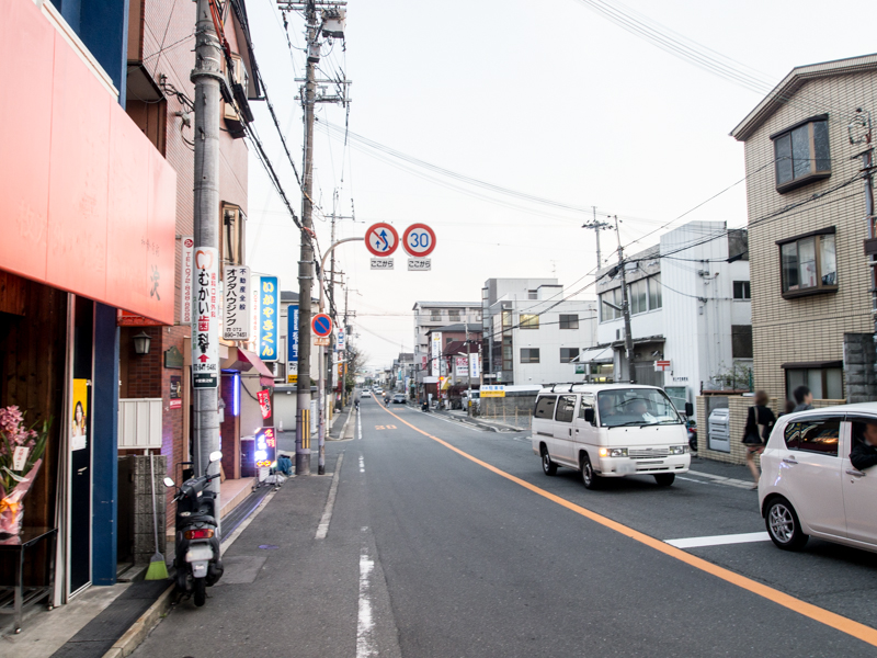 看板にうっすらと2011年の4月頃に閉店した藤家の文字が。 ここまで全て夕方の撮影です。