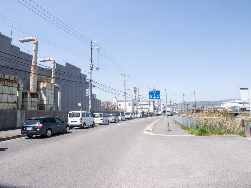 すぐそこが国道1号の招提交差点。写真でも車が並んでますがここはよく渋滞してるので、信号待ちをしながら何となく工場を眺めたことがある人も多いんじゃないでしょうか。