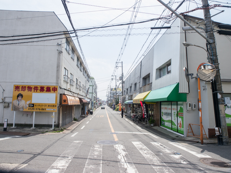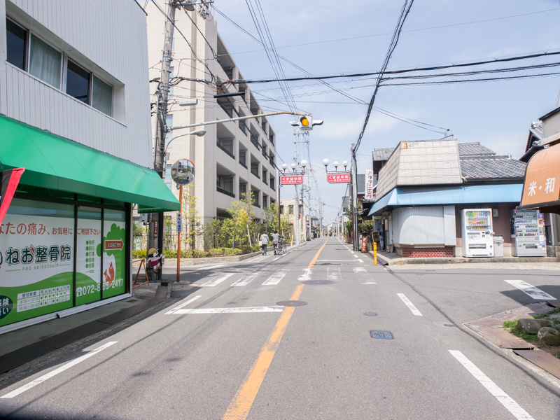 この道の先には府道18号の楠葉中央交差点があり、右折すれば樟葉駅があります。