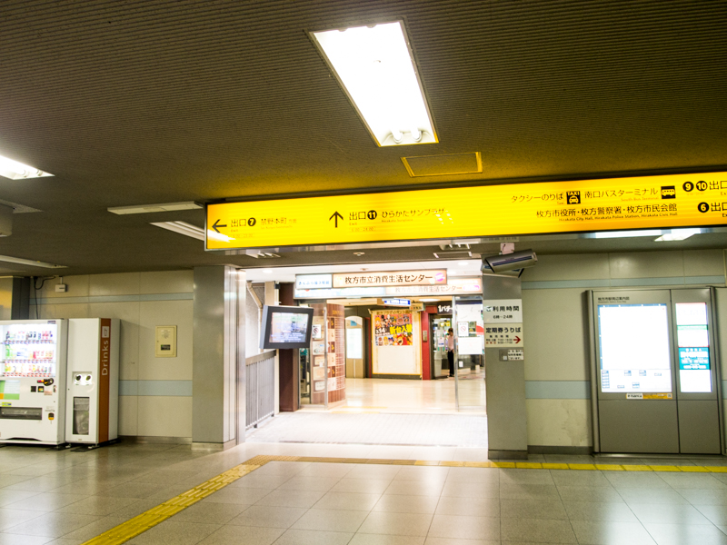 枚方市駅のこの場所からさんぷら座2階に直結しています。
