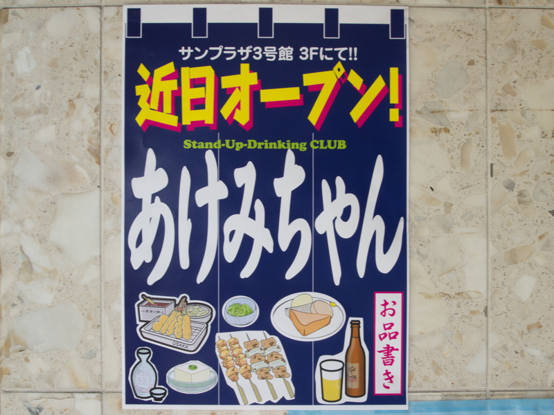 枚方市駅前さんぷら座に「立ち呑みクラブ あけみちゃん」つくってる。屋台だったお店