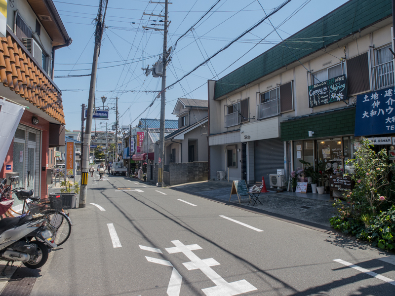 この道の先で坂道を上がっていくと、3月にオープンした「PIZZERIA Cjstd」や、建設予定のセブンイレブンがあり、その先には牧野駅が眼前に。