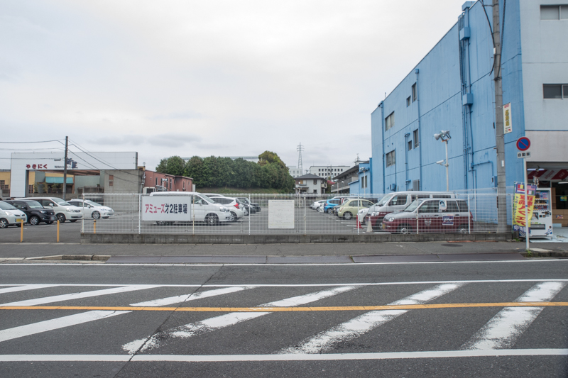 同じ駐車場内にはアミューズの立体駐車場があり、その向かいにはアミューズの店舗が。焼肉の新羅は2013年5月に閉店しました。