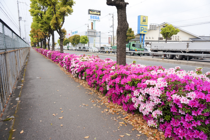 国道1号線のツツジが満開2014【枚方フォト】
