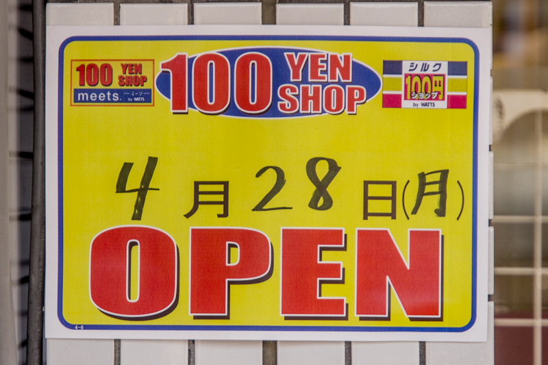 枚方公園駅前に100円ショップの「meets」つくってる。水嶋書房だったところ。4月28日オープン