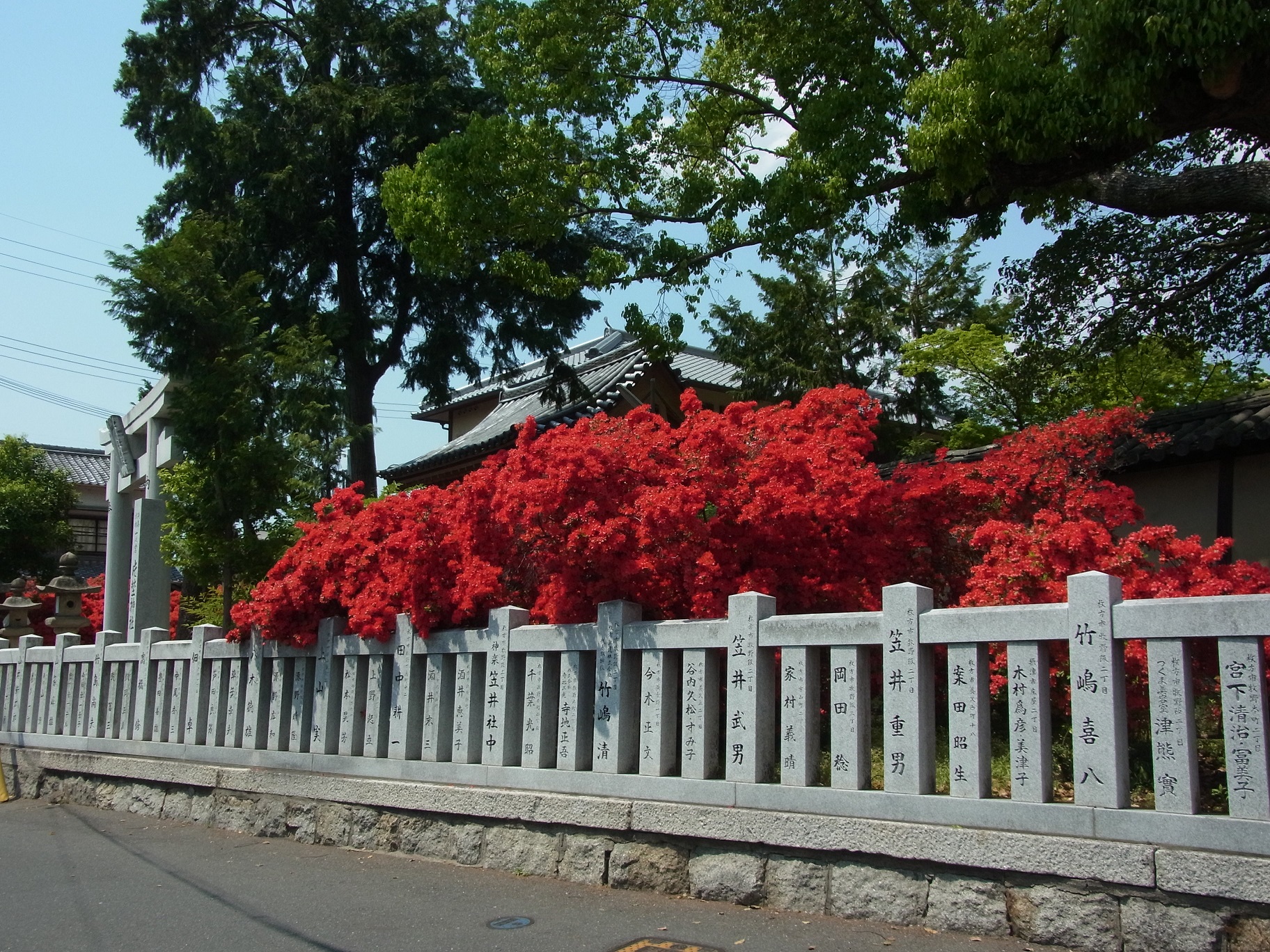 「ツツジ」というのはとてもたくさん種類があるらしく、Wikipediaに載ってる様々なツツジの写真を見てたら、赤色のツツジの例としてここ片埜神社の写真が載ってました。ビックリ(笑)