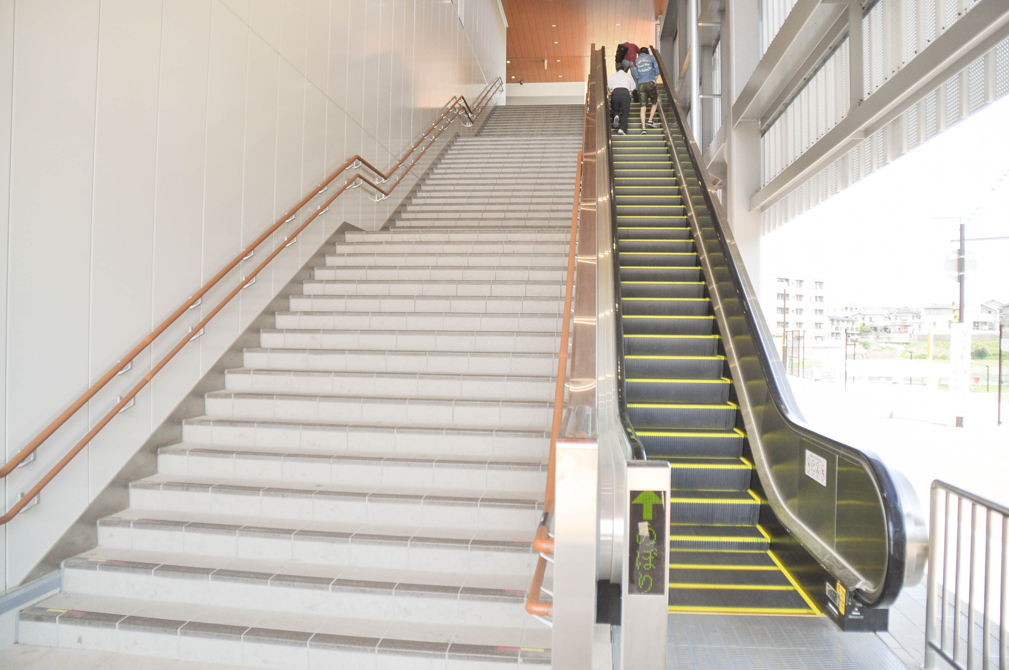 このピカピカのエスカレーターを上がると長尾駅です!