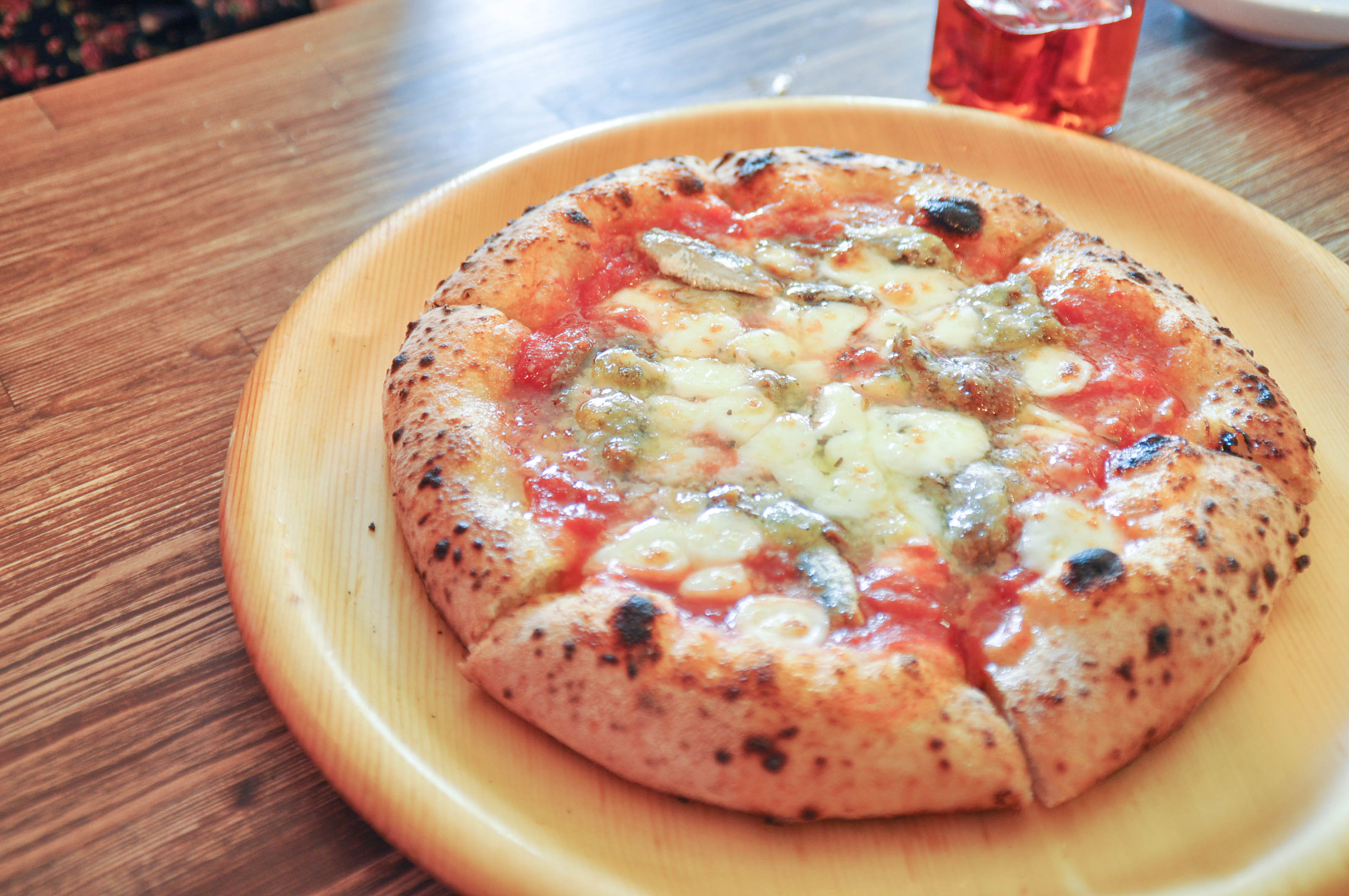 ひとつひとつ釜で焼かれているピザ。焼きたてアツアツです