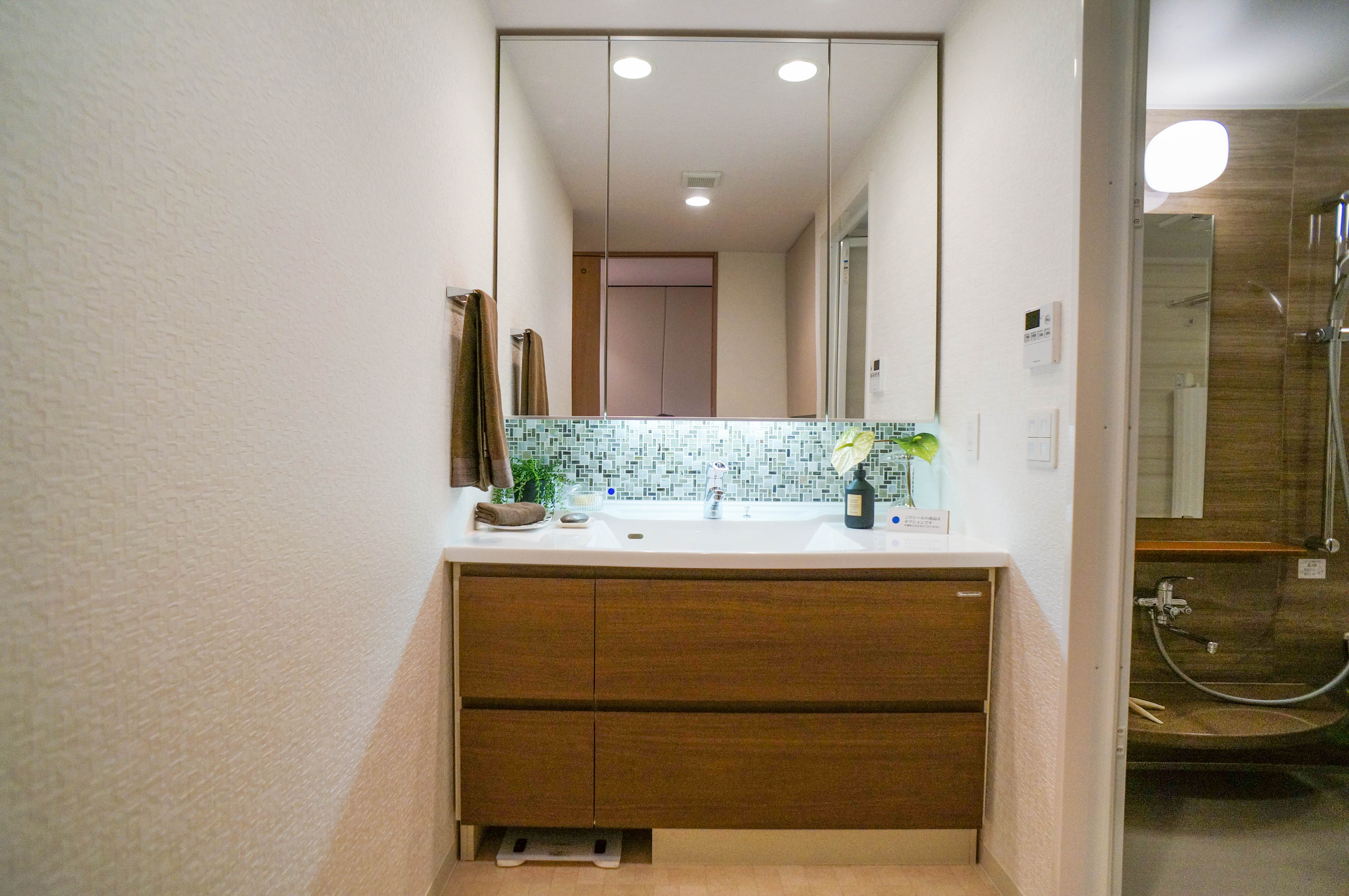 シンクや鏡の下のタイルはオプションで選ぶことが出来ます