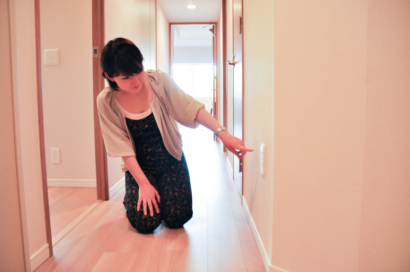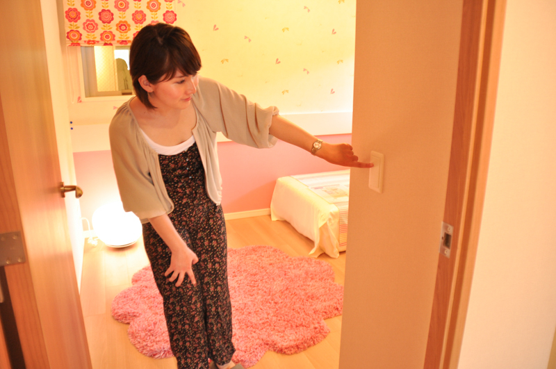 まずは玄関横の洋室へ。電気をつけて・・・あれ、このスイッチなんか低くないですか?!