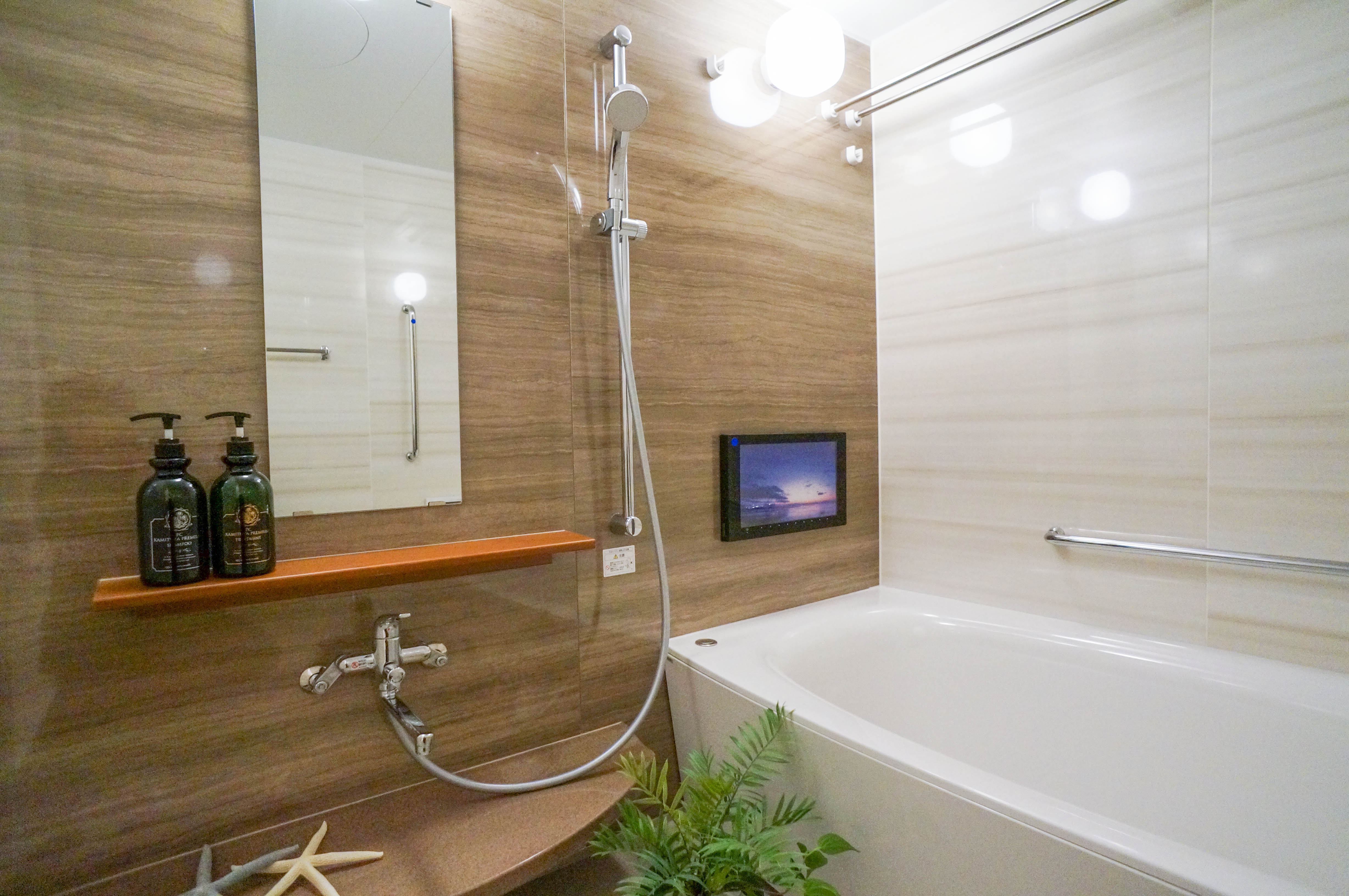 お風呂にテレビを付けることも可能です。こんな癒やし映像を見ながらゆったりバスタイムなんて幸せすぎますー