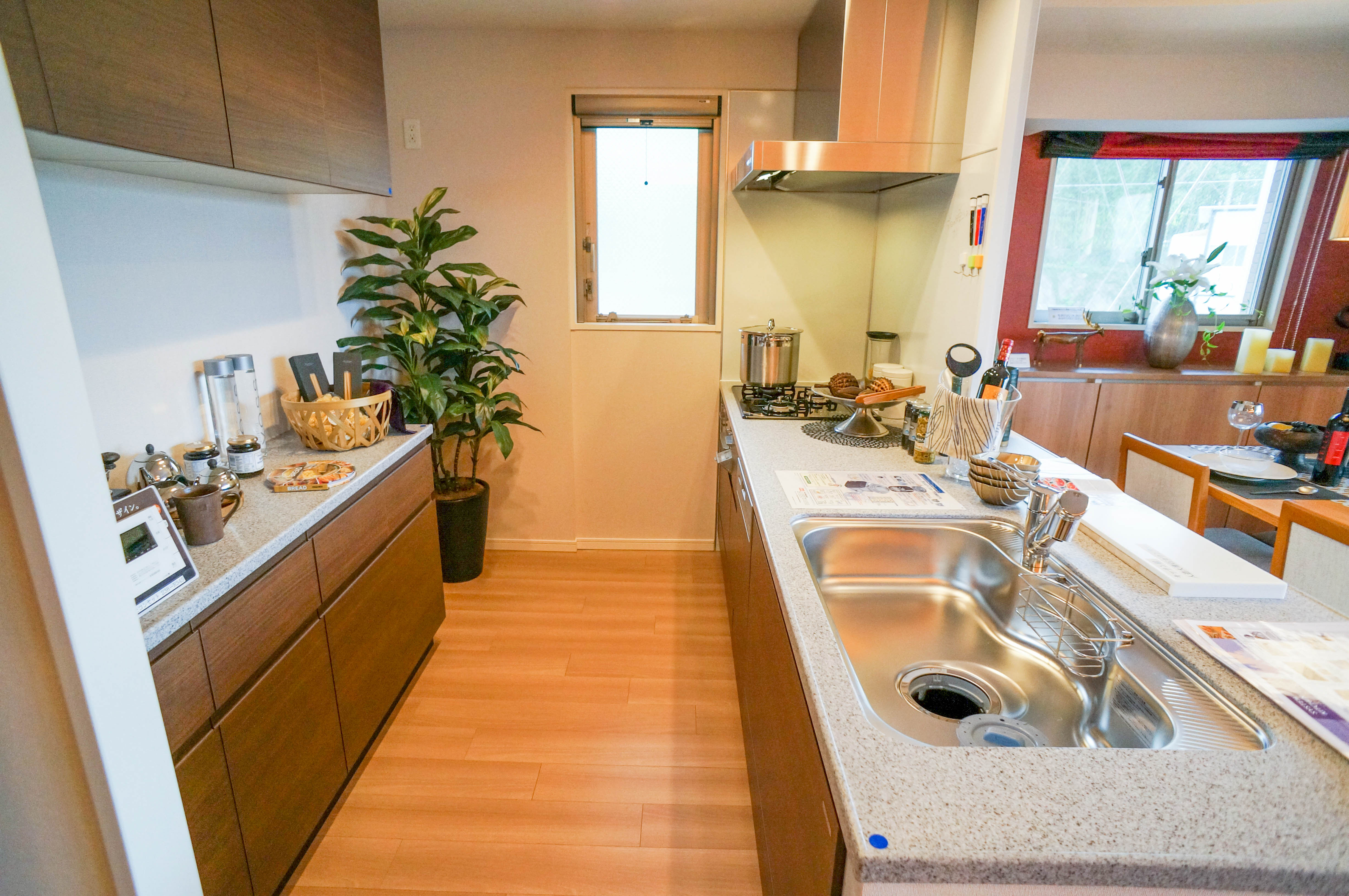 カウンターキッチンはフラットになっているので、お掃除も配膳もしやすいですね