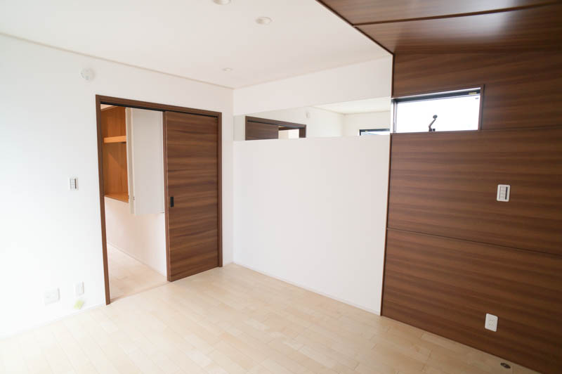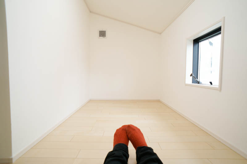 これは半分で分けることが出来るタイプのお部屋ですね!例えば子どもが小さいうちはこの広いままで、自分専用の部屋が欲しいとだだをこねだしたらリフォームで真ん中で壁を作る!と
