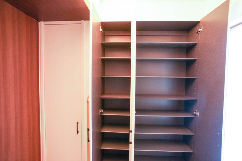 まずは収納棚。大きすぎて写真が歪んでしまいました。もうなんでも入る広さ