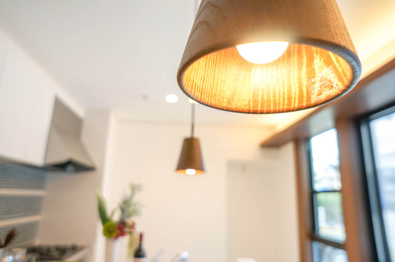この照明も素敵ですね。積極的に木が使われてあったかみがあります