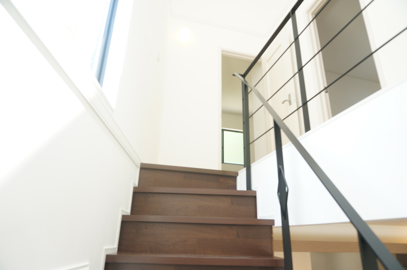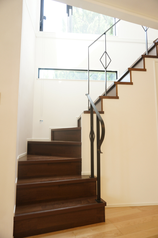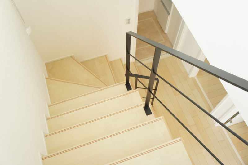 階段を上る途中に見える外の景色。反対側はママが作る晩御飯を覗き見できます。