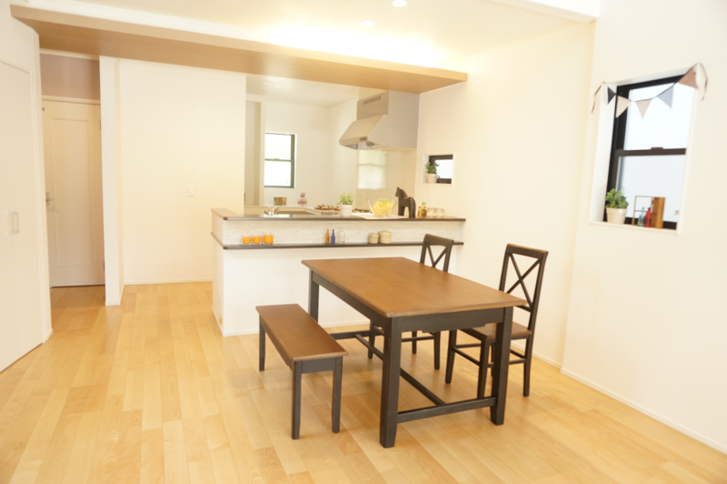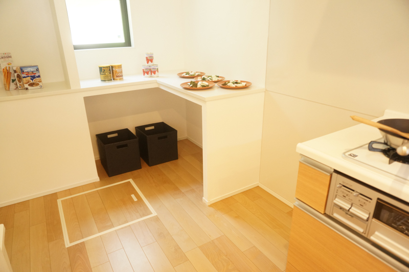 キッチンの後ろにはこんなスペースがあるので、ご飯を作りながら子供の宿題を見てやるもよし、ママの趣味をするもよし