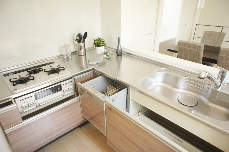 引き出し型の収納と食洗機が「いい仕事しまっせ〜」って、ドヤ顔してます