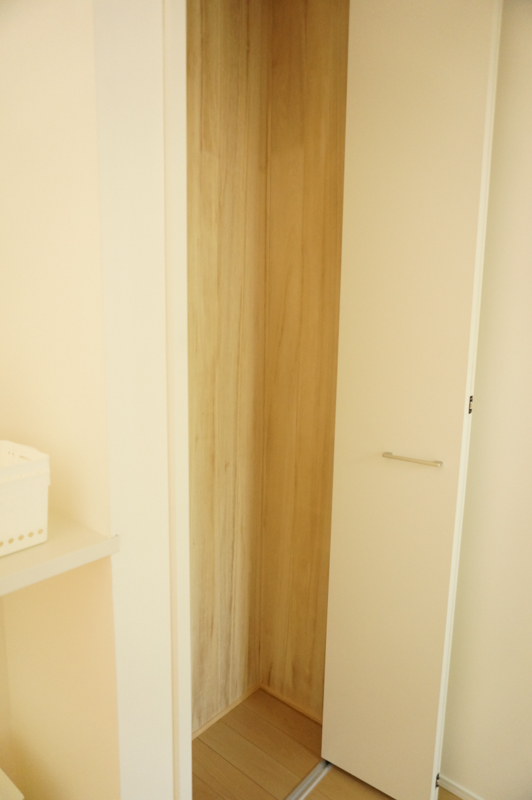 勝手口付近にも十分なスペースがとってあり、勝手口の向かいには縦長の収納庫があります