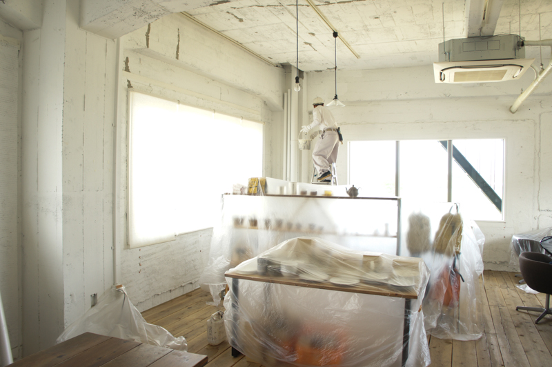 失礼…。取材に伺った日は改装中でしたのでその写真もパチリ。現在オープンへ向けて準備最終段階のカフェ「CASANE(カサネ)」さんがアルバイトスタッフを募集されます。