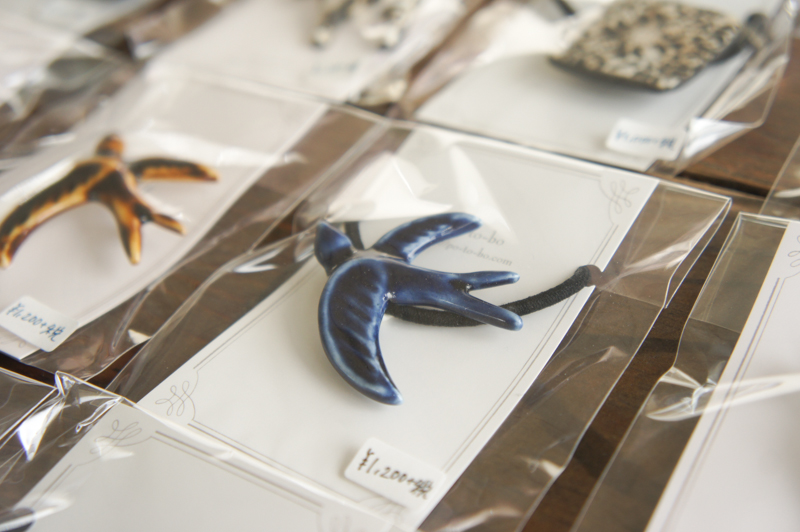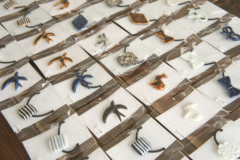 po-to-boの陶器製のヘアゴムとブローチ