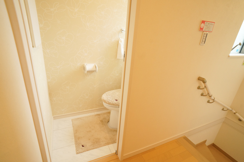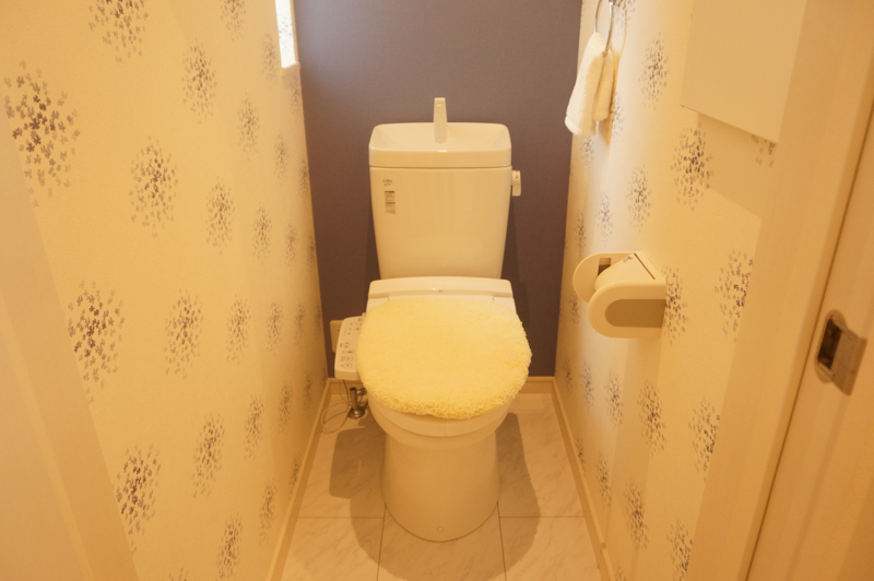 「あ、かわいい」と思わず声がでたトイレ。奇抜すぎず、シンプル過ぎず、壁紙だけでもこんなに変わるんやな〜と、勉強になります。