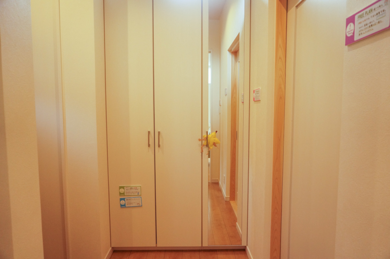 左側には土間収納。外で使うもので、家に片付けておきたいものを収納できます。子どもたちが外で遊ぶものもすっきりしまっておけますね