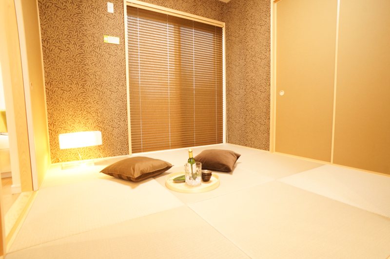 壁紙の色や模様、そしてブラインドで雰囲気がこんなに変わるんですね〜。畳の部屋でシャンパンなんて、粋