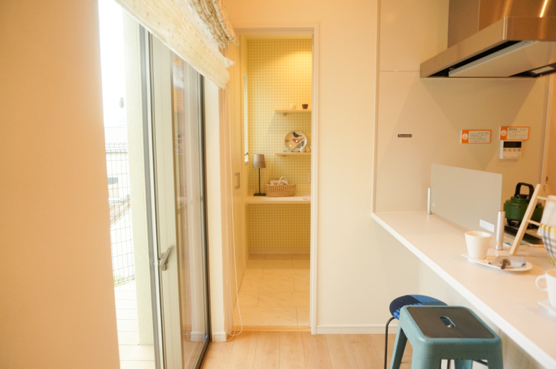 洗面台の隣は洗濯機置場。そして、バスルームです