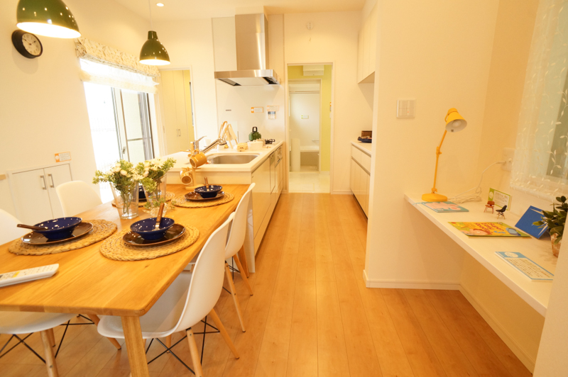みんなが集まる家族だんらんスペース「ダイニング・キッチン」中心とした、暮らしやすい動線とパパ・ママ・チャイルドそれぞれの心地よいプライベート空間も確保したヌーク付きの「DK家族の家」。生活しやすい環境がそろって、さらにレジャーや四季折々の景色を楽しめる山田池公園へもすぐ!