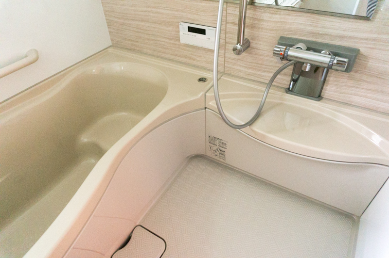 大塚さん「トクラスのシステムバスです。バスタブはひょうたん型でくびれているので洗い場の部分を広く取ることができます。」