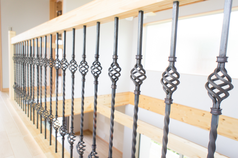 優しい色合いの木材に、個性的な手すり。おしゃれです