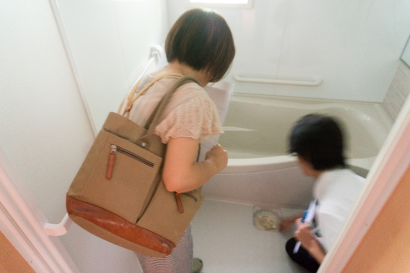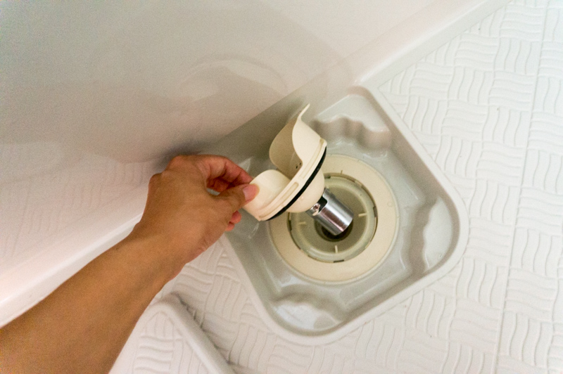 斉藤さん「保温効果のある浴槽と排水口もねっ!」と、後ろから。