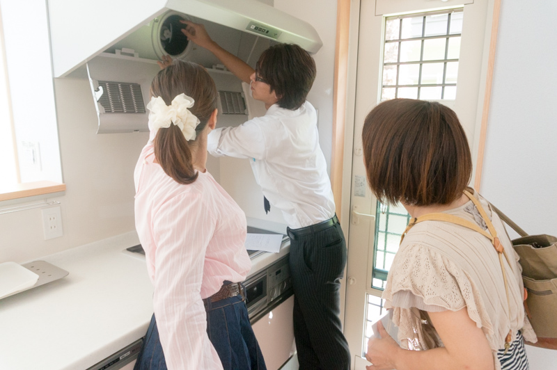 大塚さん「換気扇は煙や油、蒸気はこの部分で吸い込み口に吸い込まれるまで、跳ね返って対流できるようになっています。吸込口の網も、汚れが洗い落としやすい加工がしてあります。」