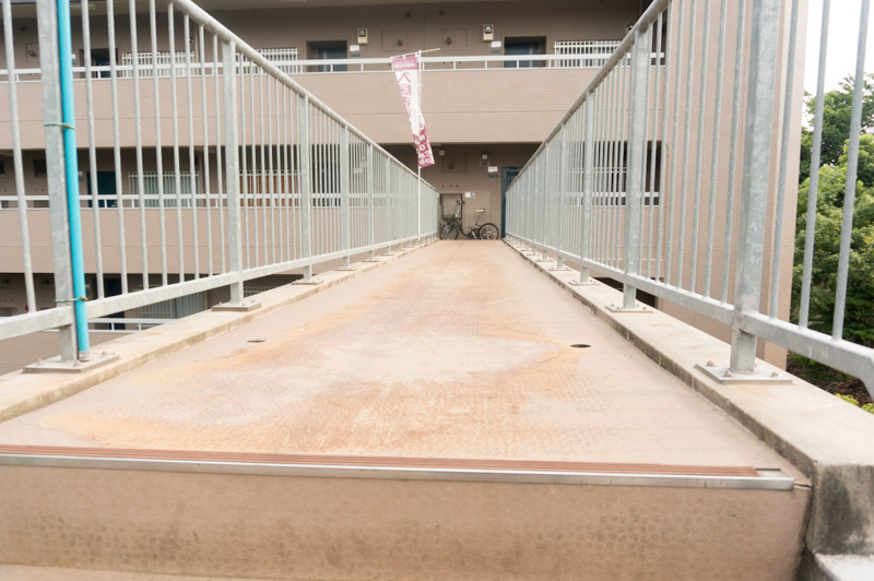 もうひとつ、右側に見えていたマンションへの橋を渡ると・・・な、なんと4階部分とつながっています