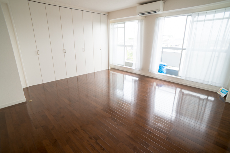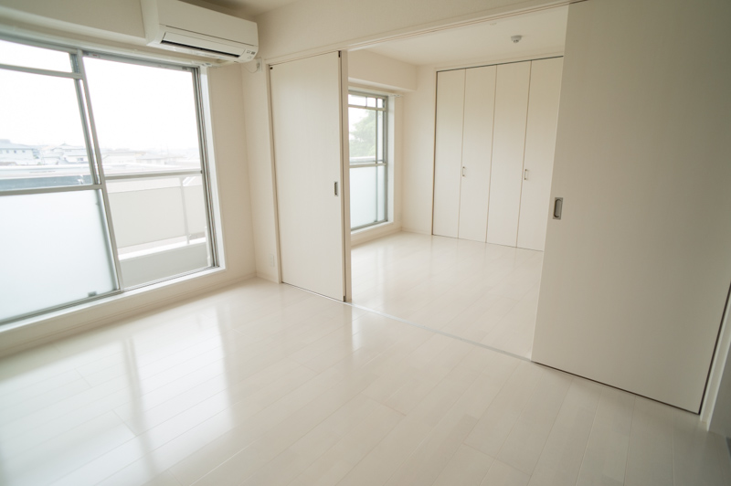 この部屋も可動式扉の大型クローゼットがあります