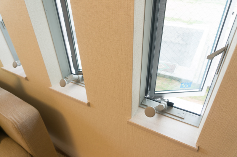 しかもこの形だと、引違い窓より風の流れを取り込みやすいそうです。この日も暑かったのですが、そよそよいい風が入ってきていました