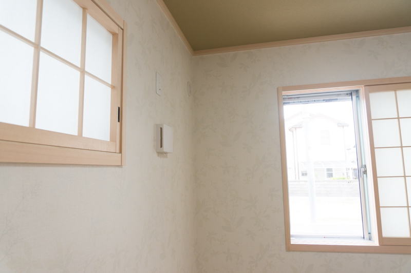実はこれ、壁紙の余った分をあえて置いてくれてるんです!!(2号地も同様)お子さんが壁を汚したから部分的に壁紙を替えたい・・・けど、家を建ててから数年経過してからだと同じ品番の壁紙がないー