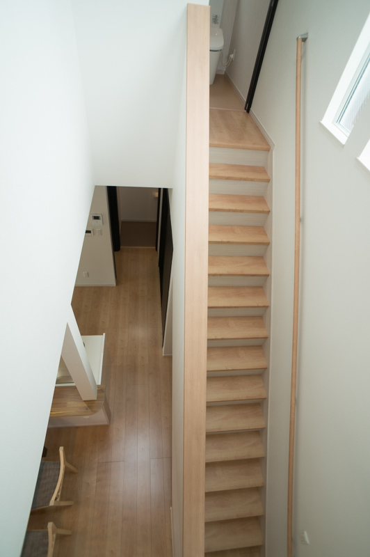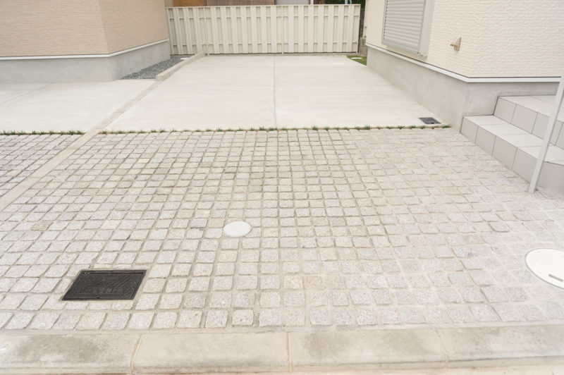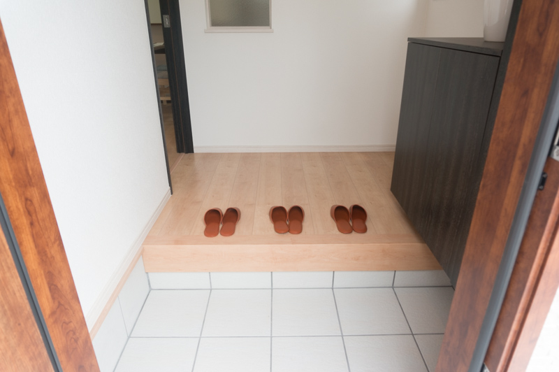 玄関前の階段を少し奥に持ってくることで、ここにも来客時の自転車やバイクを置くことが出来るようになっています。