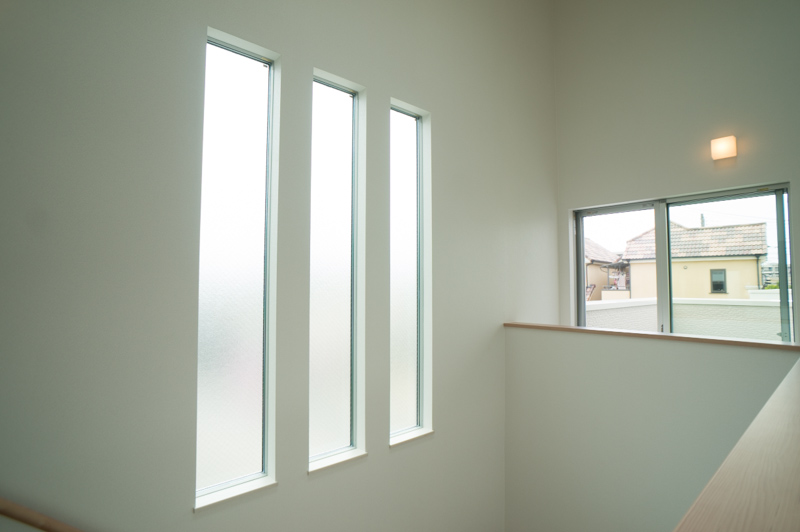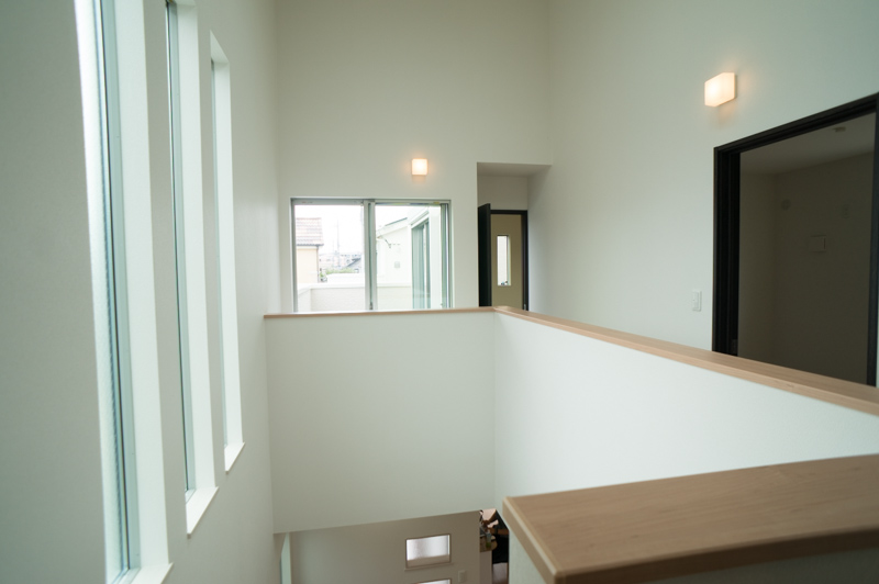 2階吹き抜け部分にはこのように小窓がたくさんあるので、自然光で溢れています