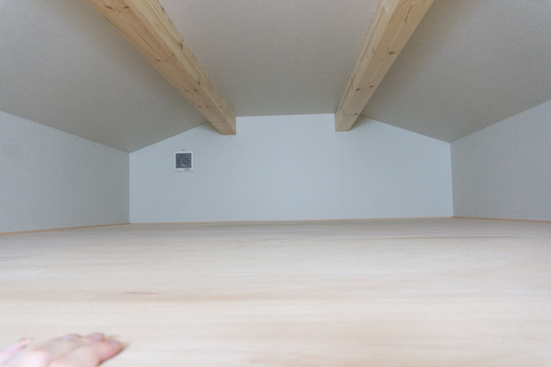 よいしょよいしょと上ると、小屋裏収納が出現!!ここにしばらく使わないものとか仕舞うことができます