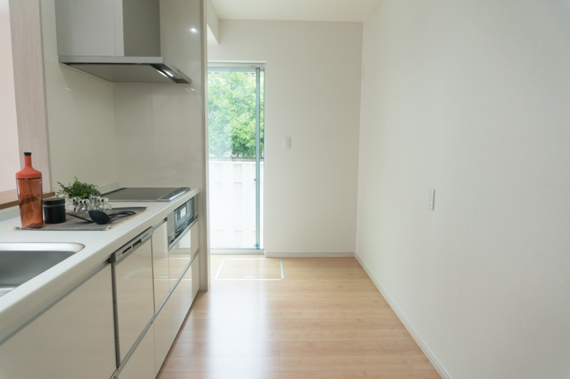 こちら側は行き止まりで壁になっているおうちが多いのですが、この横からもキッチンへ行くことができます。家事動線もスムーズですし、キッチンにありがちな閉塞感もありません