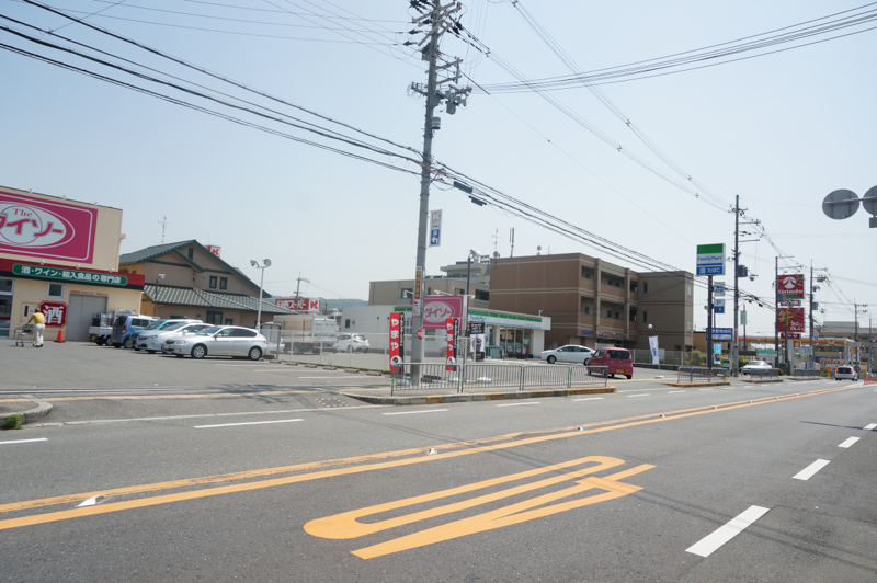 736号線沿いには、100均やコンビニ、飲食店も多数。