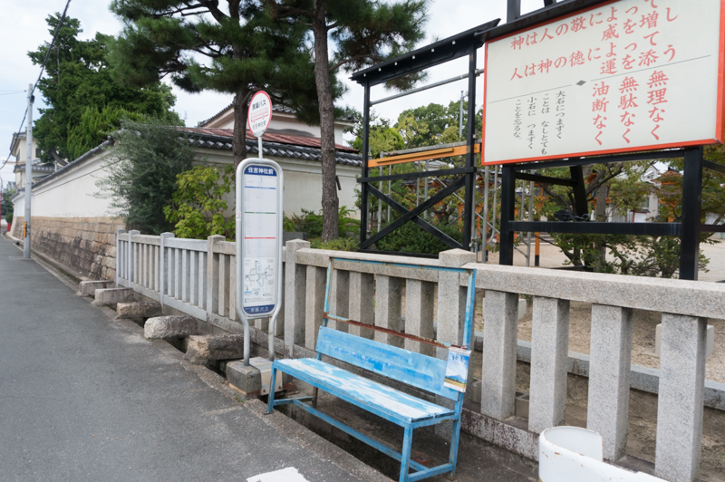 住吉神社の前にあるバス停。こちらが最寄りのバス停となります。