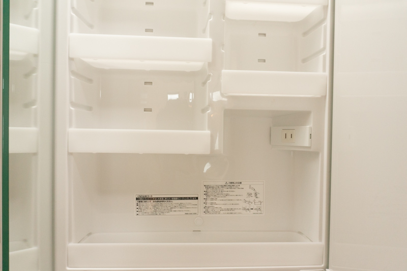 洗面台の後ろの収納内には真ん中と右側にコンセント。